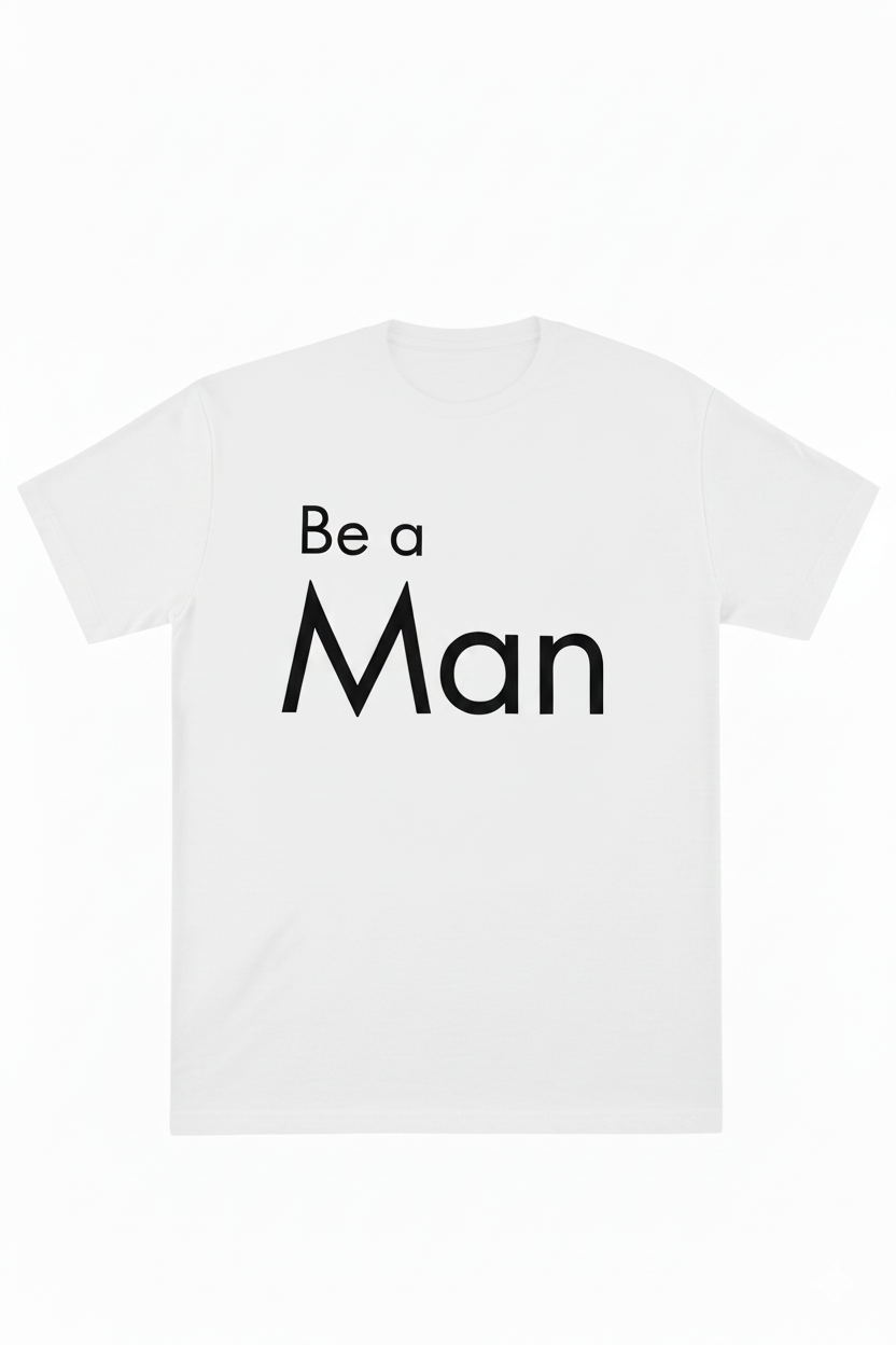 The minimal yet bold “Be A Man” text, printed using high-quality DTF technology, ensures durability and a sharp finish that won’t fade easily. The classic white fabric with black typography creates a timeless contrast, making this piece versatile enough for both gym sessions and casual outings.